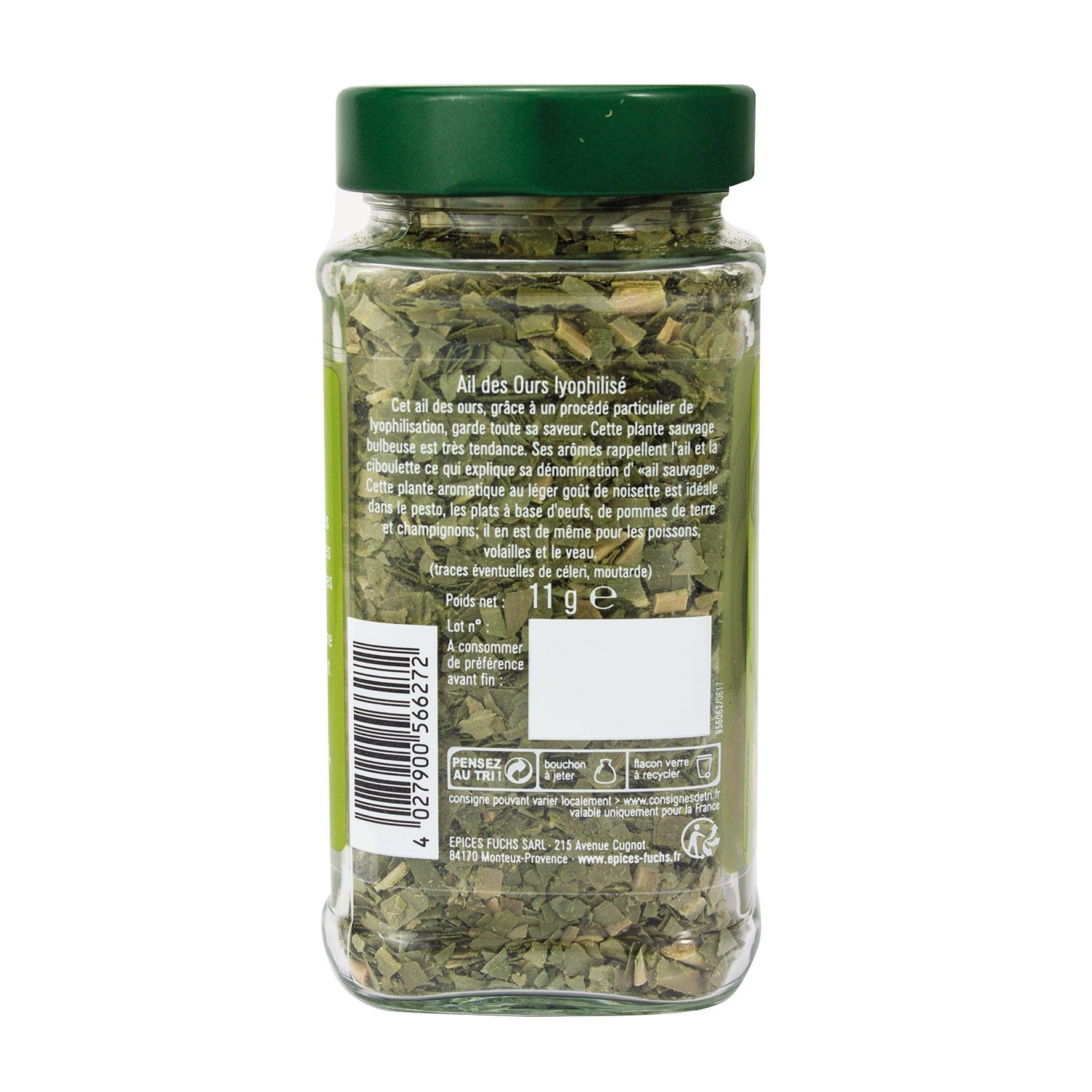 Ingrédients : Ail des Ours lyophilisé (traces éventuelles de céleri, moutarde)