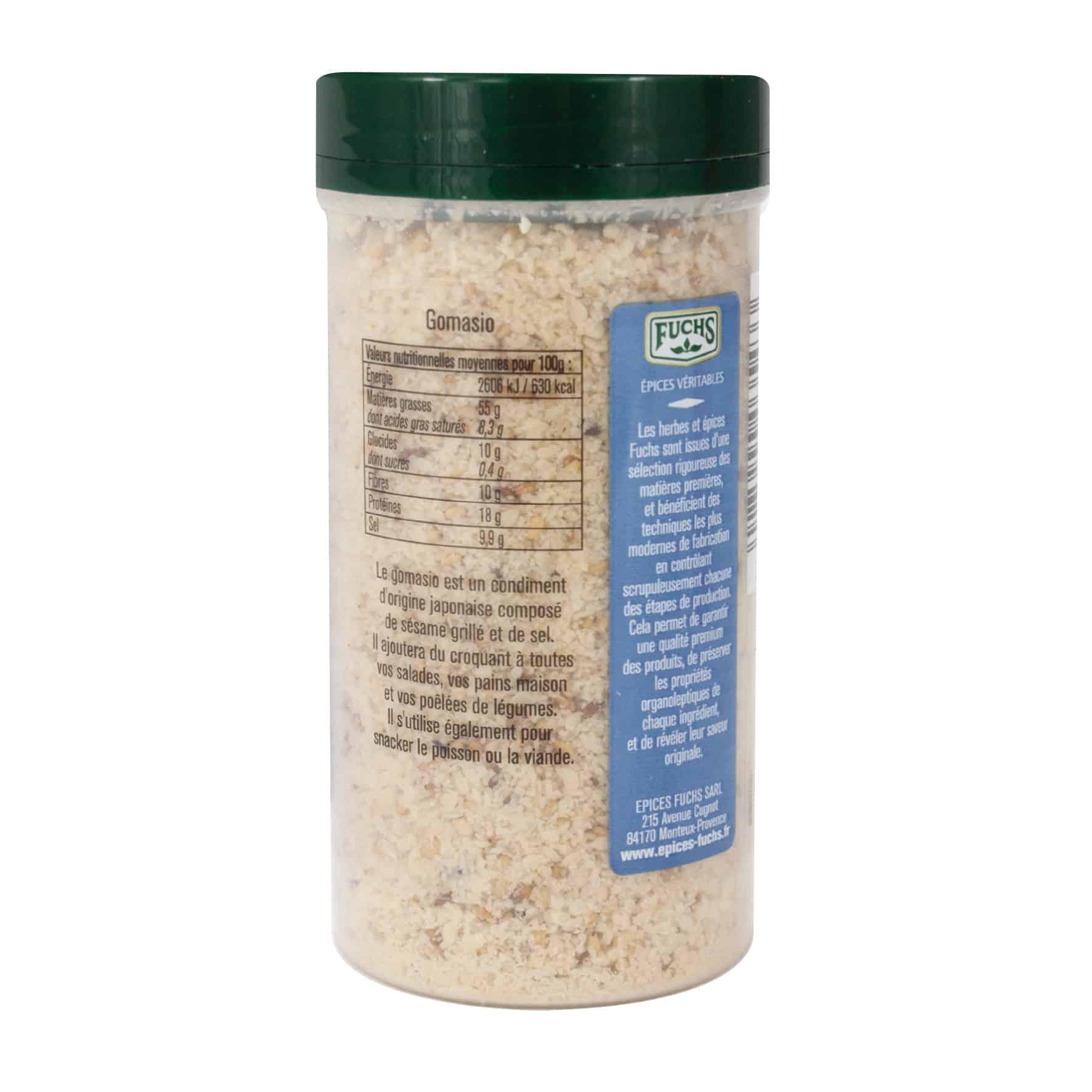 Vous pouvez remplacer en cuisine le sel de table par notre gomasio Fuchs, cela sera moins salé évidemment puisque ce mélange sel et sésame vous permet de limiter la quantité de sel quotidien.